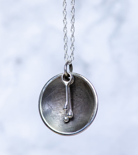 This piece is handmade from silver with a diameter of 2.3cm approx.